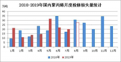 據(jù)統(tǒng)計(jì),2019年7月份國(guó)內(nèi)聚丙烯檢修損失量在20.12萬噸,環(huán)比(2019年6月份22.01萬噸)減少1.89萬噸,降幅在8.58%;...