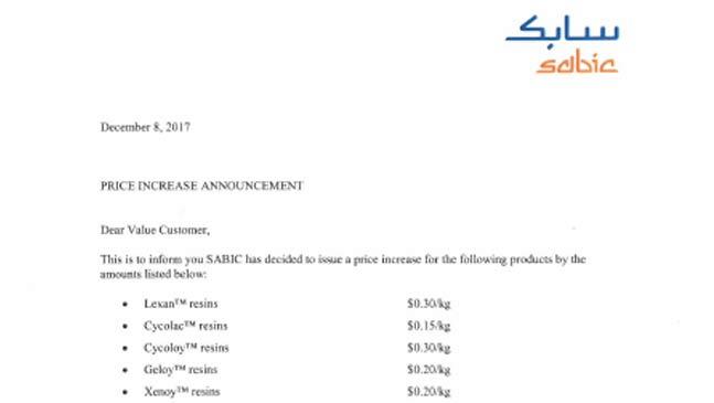 鉅衍塑化小編通知大家, SABIC官方 漲價函如圖所示: 鉅衍塑化有限公司是一家銷售SABIC(即沙伯基礎創(chuàng)新塑料公司)工程塑...