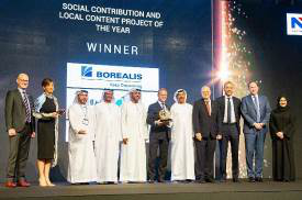 ????????STOP項(xiàng)目戰(zhàn)略合作伙伴北歐化工、博祿和諾瓦化學(xué)自豪的宣布,該項(xiàng)目在2019阿布扎比國際石油天然氣展覽會(ADIPEC)上榮獲年度社會貢獻(xiàn)和地方項(xiàng)目獎。此獎的設(shè)立是為了表彰那些為石油和天然氣行業(yè)未來做出的杰出貢獻(xiàn)。頒獎儀式于2019年11月11日在阿布扎比舉行。