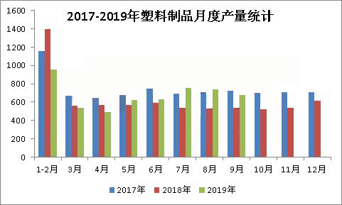 ????????2019年9月中國塑料制品產(chǎn)量為679.66萬噸,同比增長4.5%;2019年1-9月中國塑料制品產(chǎn)量為5993.61萬噸,同比增長4.1%。第三季度塑料制品產(chǎn)量有所增加。但是近幾天塑料制品總量增加速度放緩,2015年以來增長率僅僅維持在1%-3%。需求量增長速度遠不及供應。