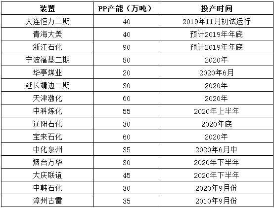 ????????據(jù)了解,目前大連恒力二期聚丙烯裝置預計下個月試運行,青海大美、浙江石化等裝置年底前或將投產(chǎn)。明年投產(chǎn)熱情依舊,寧波福基二期、華庭煤業(yè)、天津渤化、中科煉化等十幾套裝置產(chǎn)能集中釋放,可以說未來供應壓力山大。