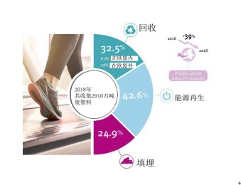 ????????2018年歐洲共收集了2910萬(wàn)噸廢塑料,其中32.5%的廢塑料進(jìn)行了回收再生,42.6%的廢塑料進(jìn)行了能源轉(zhuǎn)換,24.9%的廢塑料進(jìn)行了填埋處理。