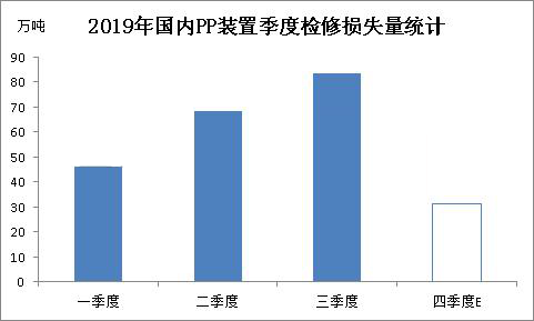 ????????上圖看可以看出,年內(nèi)前三個季度檢修損失量逐步增加,第三季度損失量高達84萬噸左右,然而據(jù)監(jiān)測,第四季度國內(nèi)檢修裝置較前期明顯減少。寧波臺塑裝置檢修25天10月中旬重啟;廣州石化一三線于10月初按計劃檢修25天;寧波福基10月初檢修30-40天;大連恒力一期裝置10月底預(yù)計檢修10天左右。預(yù)計第四季度檢修損失量僅僅在31萬噸。