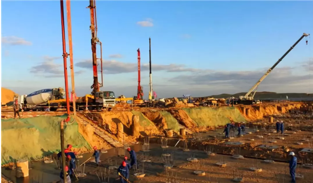 ????????裂解爐基礎(chǔ)自9月23日土方開挖以來,項(xiàng)目部積極采取措施,詳細(xì)制定基礎(chǔ)開挖、樁基破樁施工方案,合理組織、調(diào)配人員及施工機(jī)械,加強(qiáng)現(xiàn)場技術(shù)指導(dǎo)和安全監(jiān)護(hù),克服與交叉作業(yè)多等不利因素,積極推動項(xiàng)目的施工進(jìn)度。截止9月30日,1、2號裂解爐基礎(chǔ)破樁工作圓滿結(jié)束,隨后施工人員進(jìn)行了樁頭處理、基坑邊坡平整、樁荷載試驗(yàn)等工作。