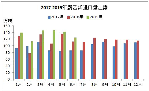 ????????據(jù)統(tǒng)計(jì),2019年上半年P(guān)E進(jìn)口總量在813.1萬噸,較去年同期(694.1萬噸)增加119萬噸,增幅在17.14%。2019年P(guān)E進(jìn)口量仍處于增加走勢,主要原因是19年國外PE裝置擴(kuò)能更甚于國內(nèi),且國外PE輕烴裝置較多,聚乙烯成本較低,利潤可觀,使得聚乙烯更具價(jià)格優(yōu)勢。