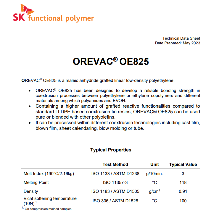 - 法國阿科瑪 PEPA三層共擠 Orevac OE825 馬來酸酐改性粘合劑樹脂 物性表, 法國阿科瑪 PEPA三層共擠 Orevac OE825 馬來酸酐改性粘合劑樹脂 產(chǎn)品參數(shù),法國阿科瑪 PEPA三層共擠 Orevac OE825 馬來酸酐改性粘合劑樹脂 性能表,法國阿科瑪 PEPA三層共擠 Orevac OE825 馬來酸酐改性粘合劑樹脂 出廠報告, MSDS,, 物質(zhì)安全資料表, UL黃卡,{ SGS報告, RoHS, 食品級認(rèn)證, NSF飲用水標(biāo)準(zhǔn), 產(chǎn)品資料, 產(chǎn)品性能, 出廠報告, 原廠原包, 代理商, 熱變形溫度, 熔指數(shù), 流動系數(shù), 抗沖擊性能、沖擊強(qiáng)度, 低溫韌性、低溫抗沖擊性能, 熔體流動系數(shù)、熔體流動速率, 加工工藝、加工參數(shù)、加工溫度, 歐盟RoHS 德國FDA 美國FDA 日本FDA