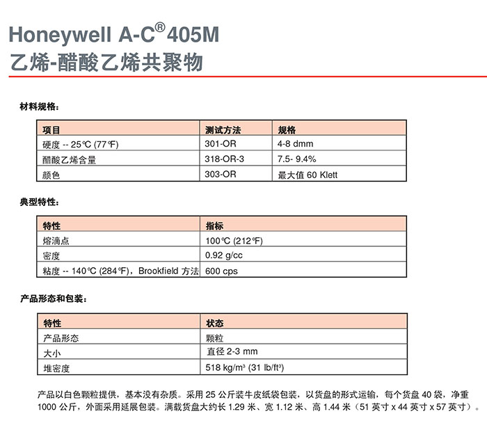 - Honeywell霍尼韋爾 A-C 405M/AC 405M 蠟粉 乙烯-醋酸乙烯共聚物 (EVA) 物性表, Honeywell霍尼韋爾 A-C 405M/AC 405M 蠟粉 乙烯-醋酸乙烯共聚物 (EVA) 產(chǎn)品參數(shù),Honeywell霍尼韋爾 A-C 405M/AC 405M 蠟粉 乙烯-醋酸乙烯共聚物 (EVA) 性能表,Honeywell霍尼韋爾 A-C 405M/AC 405M 蠟粉 乙烯-醋酸乙烯共聚物 (EVA) 出廠報(bào)告, MSDS,, 物質(zhì)安全資料表, UL黃卡,{ SGS報(bào)告, RoHS, 食品級(jí)認(rèn)證, NSF飲用水標(biāo)準(zhǔn), 產(chǎn)品資料, 產(chǎn)品性能, 出廠報(bào)告, 原廠原包, 代理商, 熱變形溫度, 熔指數(shù), 流動(dòng)系數(shù), 抗沖擊性能、沖擊強(qiáng)度, 低溫韌性、低溫抗沖擊性能, 熔體流動(dòng)系數(shù)、熔體流動(dòng)速率, 加工工藝、加工參數(shù)、加工溫度, 歐盟RoHS 德國FDA 美國FDA 日本FDA
