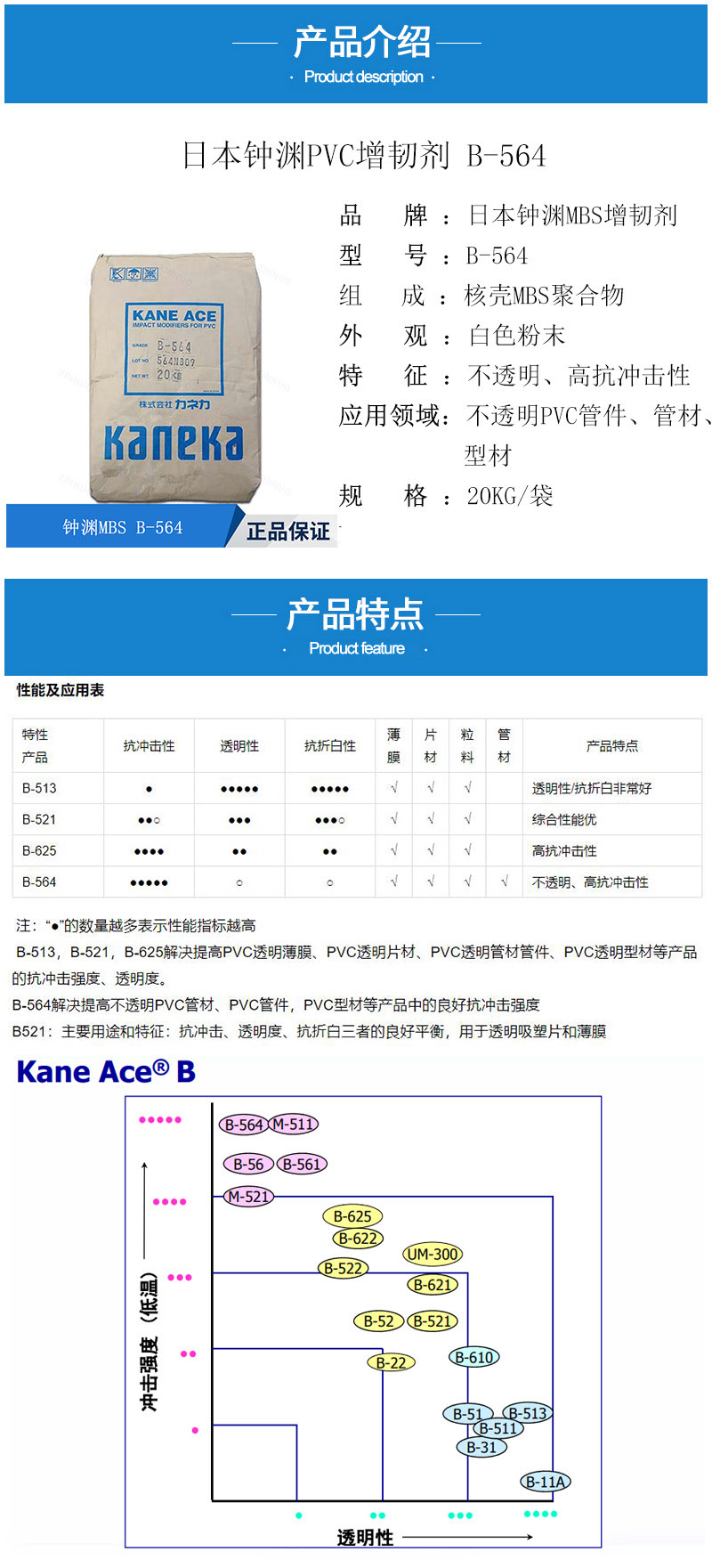 | 型號:KANE ACE B-564(B564) | 品牌:日本鐘淵kaneka | 有效物質含量:99.5(%) |