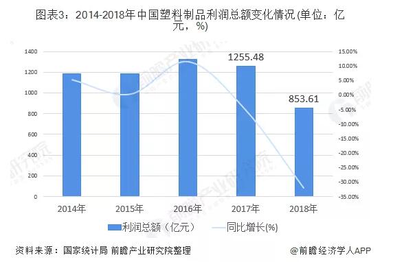 從行業(yè)利潤(rùn)總額的情況來看,2014-2017年,中國(guó)塑料制品行業(yè)利潤(rùn)總額呈波動(dòng)上升的趨勢(shì)。2017年行業(yè)利潤(rùn)總額達(dá)1255.48億元,2018年行業(yè)利潤(rùn)總額驟跌至853.61億元,同比上年下降至32.01%。