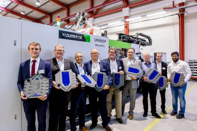 伊之密與合作伙伴Frimo提供的ReactPro方案,將注射成型與聚氨酯(PUR)包覆工藝結(jié)合在一起,更簡(jiǎn)單、更模塊化、更靈活、更具成本效益。在Frimo總部舉行的聯(lián)合技術(shù)開放日上,第一套高度集成和自動(dòng)化的ReactPro系統(tǒng)亮相,現(xiàn)場(chǎng)生產(chǎn)帶聚氨酯表面的發(fā)動(dòng)機(jī)蓋,吸引了不少感興趣的專業(yè)觀眾。