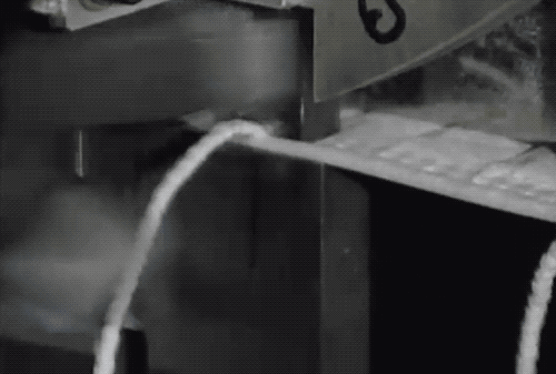 那為什么這么多天了,還會(huì)口罩緊缺呢?因?yàn)槭袌鲫P(guān)系就是供不應(yīng)求...作為一次性的消耗品,全國十幾億人都想每天人手要幾個(gè),一下子爆炸式的需求量,再加上原材料供應(yīng)緊張,制造大國緊急復(fù)工,晝夜趕工,一時(shí)也供應(yīng)不上... 這樣的三層無紡布原料,就是經(jīng)過下圖這樣的生產(chǎn)機(jī)疊合在一起。 有沒有注意到這臺(tái)機(jī)器的左上角這個(gè)小喇叭?有條串線穿過喇叭口不停地往里送。 這就要看口罩的第二個(gè)結(jié)構(gòu):口罩上部那根可彎折的金屬絲。佩戴的時(shí)候要捏合鼻夾固定到鼻梁上,這樣戴口罩才會(huì)嚴(yán)實(shí),不然沒這結(jié)構(gòu)的話,我這種塌鼻子漏風(fēng)是比較嚴(yán)重的,密封不嚴(yán)密,影響防護(hù)效果... 來看一個(gè)特寫,就是沿著無紡布的一側(cè)匹配輸送金屬絲,然后下圖結(jié)構(gòu)一卷邊,后面再一縫合,就搞定了。