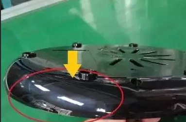 ????????產(chǎn)品表面白霧,從視覺(jué)角度來(lái)講,它呈現(xiàn)的是白色狀,所以在白色產(chǎn)品時(shí)亦不明顯,黑色高光最為明顯,如圖1所示,該產(chǎn)品為PP材料生產(chǎn),周邊表面呈現(xiàn)出大大小小的白色斑紋,像云霧般的癥狀,這里歸類(lèi)為白霧。