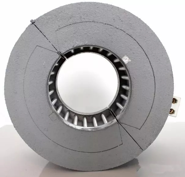 ????????傳統(tǒng)加熱圈通過接觸傳導(dǎo)方式把熱量傳遞到機筒,其中有一半的熱量散發(fā)到了空氣中;保溫型的紅外線加熱圈,發(fā)熱效率高,導(dǎo)向性的輻射可將熱量直接轉(zhuǎn)換成機筒上的溫度,避免熱量的散發(fā)。其外觀結(jié)構(gòu)如圖5、圖6、圖7。