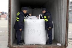 近日,上海海關(guān)兩名現(xiàn)場作業(yè)人員打開一個封存的集裝箱,一股刺鼻的嗆人氣味撲面涌出,箱子里塞滿了編織袋包裝物...