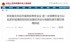 國務(wù)院總理李克強(qiáng)2月11日主持召開國務(wù)院常務(wù)會議,進(jìn)一步部署在全力以赴抓好疫情防控同時,加強(qiáng)經(jīng)濟(jì)運(yùn)行調(diào)度和調(diào)節(jié),更好保障供給...