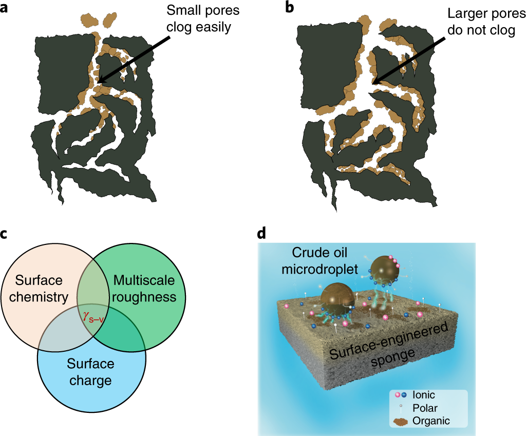 倫敦帝國理工大學和多倫多大學的研究人員已經(jīng)開發(fā)出了一種經(jīng)濟高效的海綿,可以較快地吸收油(不到10分鐘)。該研究文章發(fā)表在《自然》雜志上,描述了一種創(chuàng)新的表面工程海綿(SEnS)。該海綿有機結合了表面化學、電荷和粗糙度,擅長吸附原油微滴。