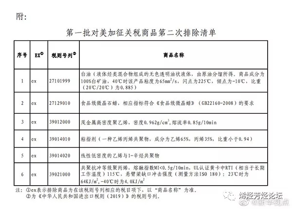 茂金屬HDPE、聚丙烯等6類化工產(chǎn)品不再加征進(jìn)口關(guān)稅!