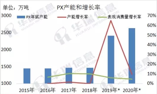 PET,有一個(gè)很長(zhǎng)的學(xué)名,聚對(duì)苯二甲酸乙二醇酯,是由PTA(精對(duì)苯二甲酸)和MEG(乙二醇)合成的聚酯切片。PTA來(lái)源于石油產(chǎn)品PX(對(duì)二甲苯),PX之前產(chǎn)能一直處于不足狀態(tài),但2019年P(guān)X的產(chǎn)能迅猛增長(zhǎng),從產(chǎn)能不足到最近甚至未來(lái)幾年的產(chǎn)能過(guò)剩。這預(yù)示著今后將會(huì)有更多的PET新料進(jìn)入市場(chǎng),化工產(chǎn)能將成為PET的重要影響因素。